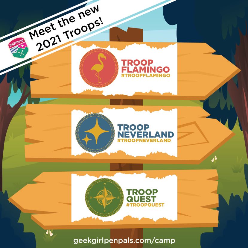 IGGPPCamp is an online camp run by the IGGPPC [International Geek Girl Pen Pals Club]. For one long weekend during August, we all get together online and do lots of fun things – including watching movies together, making s’mores, playing games on Discord, telling ghost stories, learning new things through awesome video tutorials, making friendship bracelets, building forts, and so much more. Think online convention meets scout-camp! Not sure what Camp is or how to join in? Check out our Camp FAQ page.