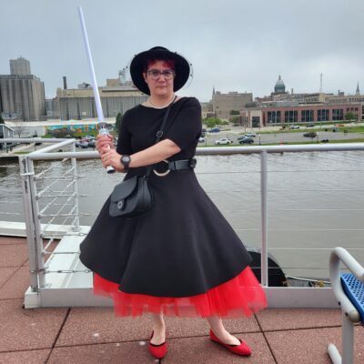 I’m Sarah, BlooPenguin, Bloo or Counsellor Bubbles. I live in the UK with my husband and the neighbourhood cats and hedgehogs, surrounded by my collection of Loungefly bags and Irregular Choice shoes and I still can’t decide where to put a single sticker permanently… I love history, and big old country houses – learning about how people lived, what they thought and what we can learn from them. I love baking and singing along to all sorts of music and kitchen dance parties (not at 3am any more, too old for that now thank you very much!). I’m teaching myself to sew (I love Charm patterns by Gertie and her inclusiveness), and my seam ripper comes in handy far more often than I’d care to admit. I believe in vintage fashion but never vintage values. I’ve been an Iggle since the early days and my favourite part of every year is Camp. Looking forward to another year of fun, silliness and everything that makes IGGPPC amazing!