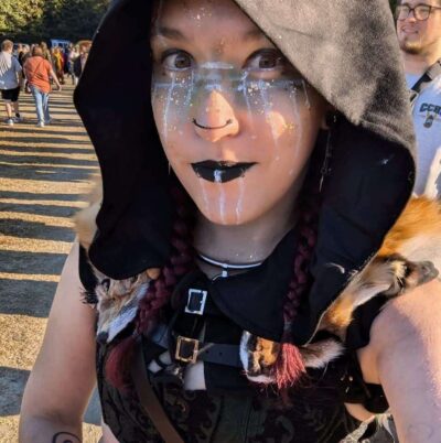 In the grim dark future there are only foxes! – Caitlan is a unique one. It is common you will find her relaxing witha true crime podcast, painting and building warhammer, or gaming. She loves all things spooky! She is also the keeper and creator of the Camp Wall! – Find her on twitch at www.twitch.tv/foxbehindthetree
