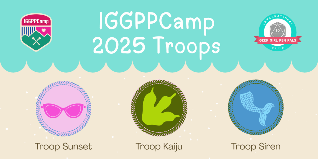 Welcome Campers, to another great year at IGGPPCamp! Each year, participants of IGGPPCamp are sorted into ‘Troops’. (This is optional– you can still participate in camp if you don’t sign up for a Troop!) These smaller groups are led by 3 counselors who will help organize Troop specific events and activities. Get to know the Campers in your Troop, show your Troop Pride, and collaborate on the Camp Cup Challenge! This page is your handy guide to all of this year’s Troops and the fantastic and illustrious counselors who will be leading them!