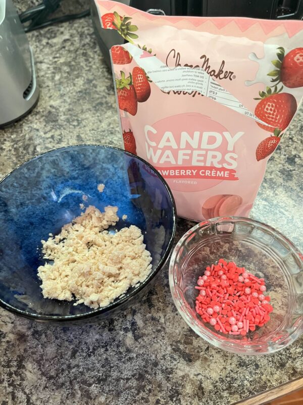 - Pink candy melts -OR- white chocolate chips with red food dye (natural, vegan, or otherwise!)