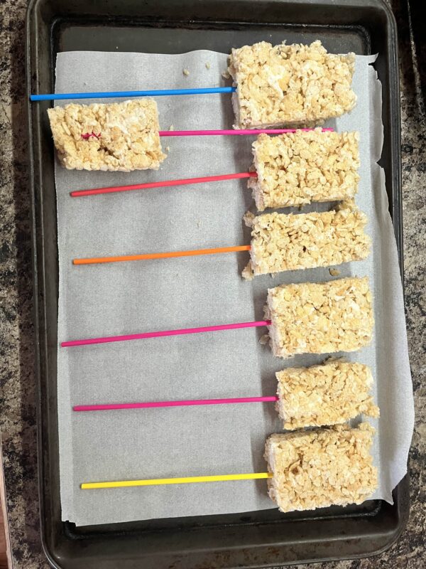-Insert your “popsicle stick” into the treat–be careful to not squish it or break it apart!