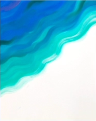 Pick a point on your canvas where the water will meet the sand. Starting from your lighter blue shade at this point working to your darkest. Squiggle your way across making those rippling waves. Repeat this slowly adding in your darker blues till you get to the corner.