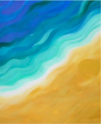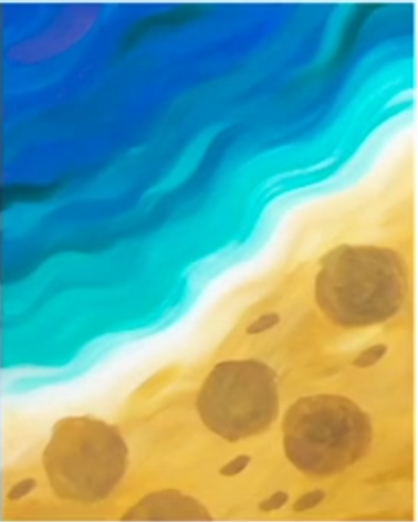 Your sand! On the opposite half place your sand color (I mix white and brown with a hint of black.) You can blend the water into the sand using white. While the paint is still wet, slowly blend it into the sand. Like the foam on the beach!