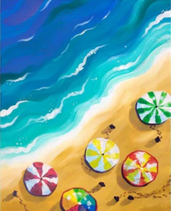 Waves! If you would like to add waves to your water, pick points out in your squiggles where you’d like to add them and following the squiggles you made add in some white. (I like to use small tiny circles to build up different levels of waves/foam.) Make sure to get where the water meets the sand to help smooth out that area if you haven’t yet!