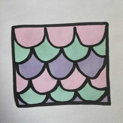 Step 1) Draw your first row of mermaid scales. Make sure they’re roughly the same size, and make them big enough to fit your patterns inside.