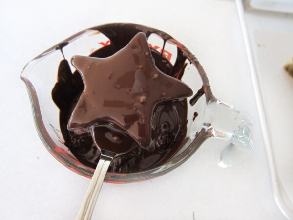 3. Set on a parchment paper lined baking sheet and allow the chocolate to harden before serving.